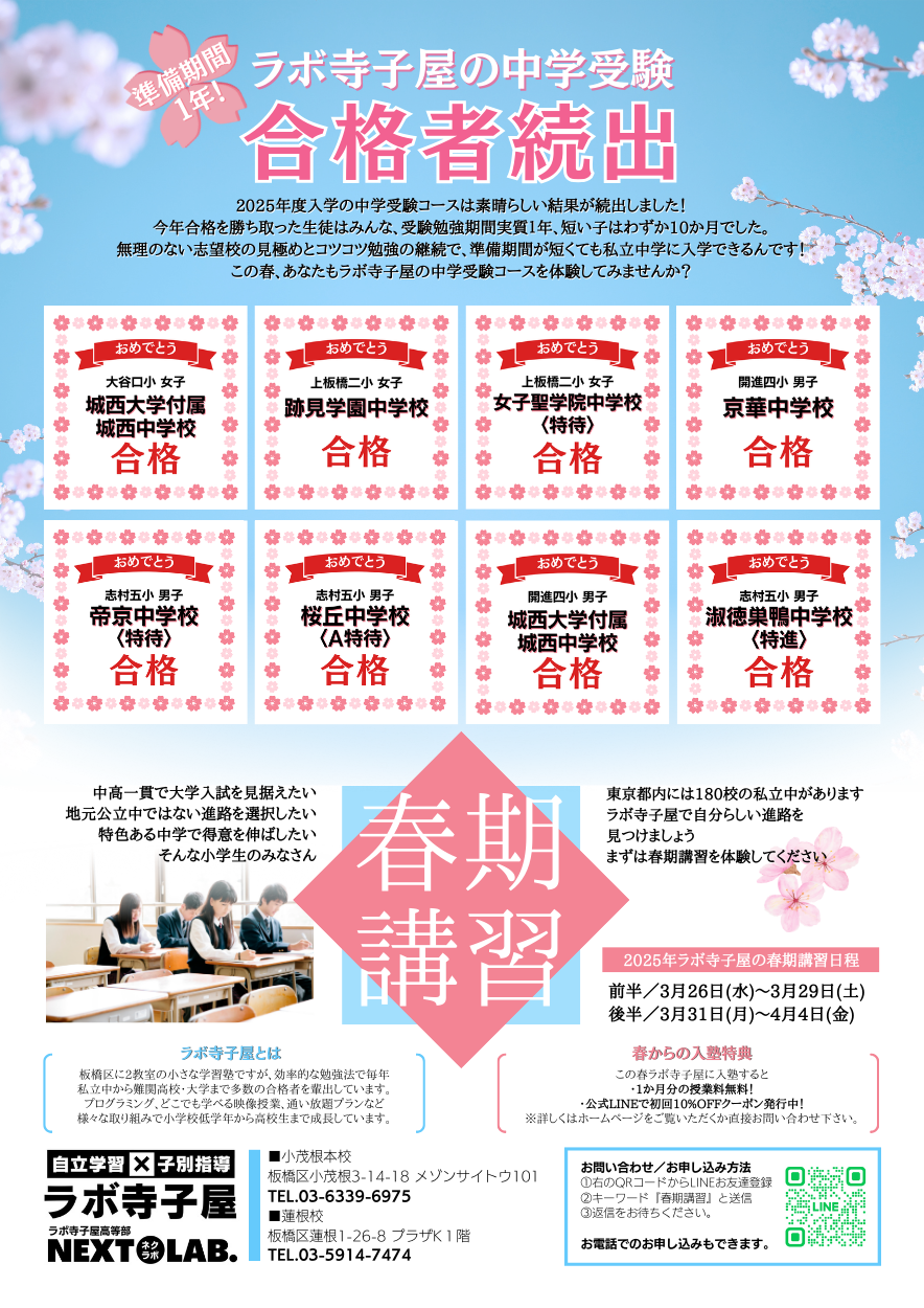 小茂根地区は、個別指導の塾が多いので、対面式授業でたくさんコマを提示されるのではないでしょうか。