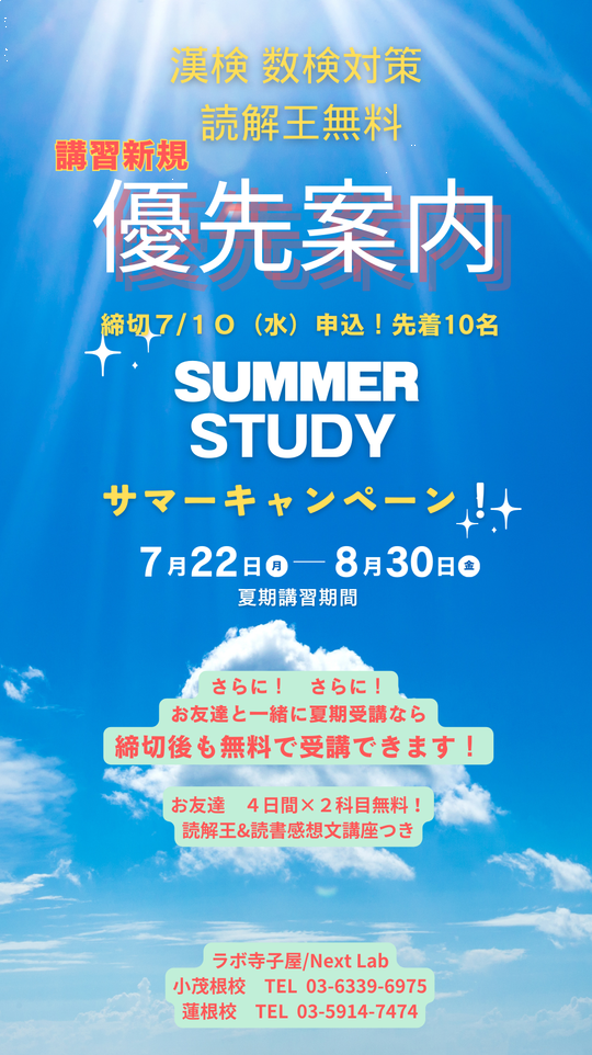 夏期講習先行案内!早期問い合わせキャンペーン限定10名!