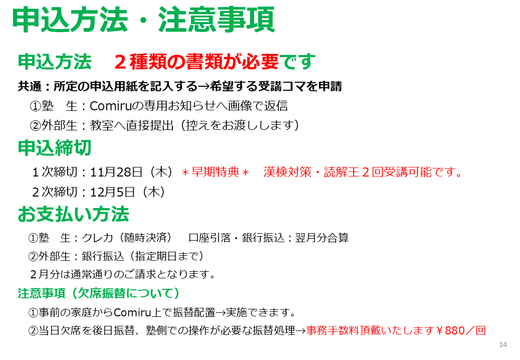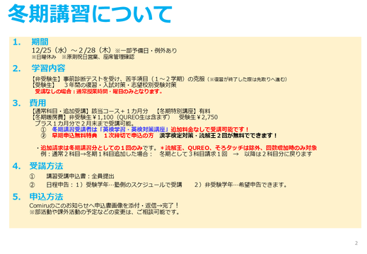 2024年冬期講習募集