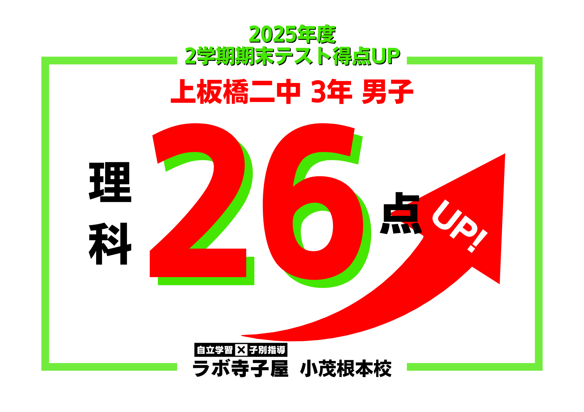 2学期末テスト大幅得点アップ!上板橋二中2年生