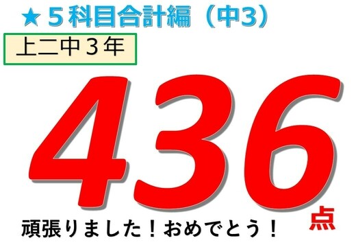 5科目 436点おめでとう! 夏に良い準備ができました