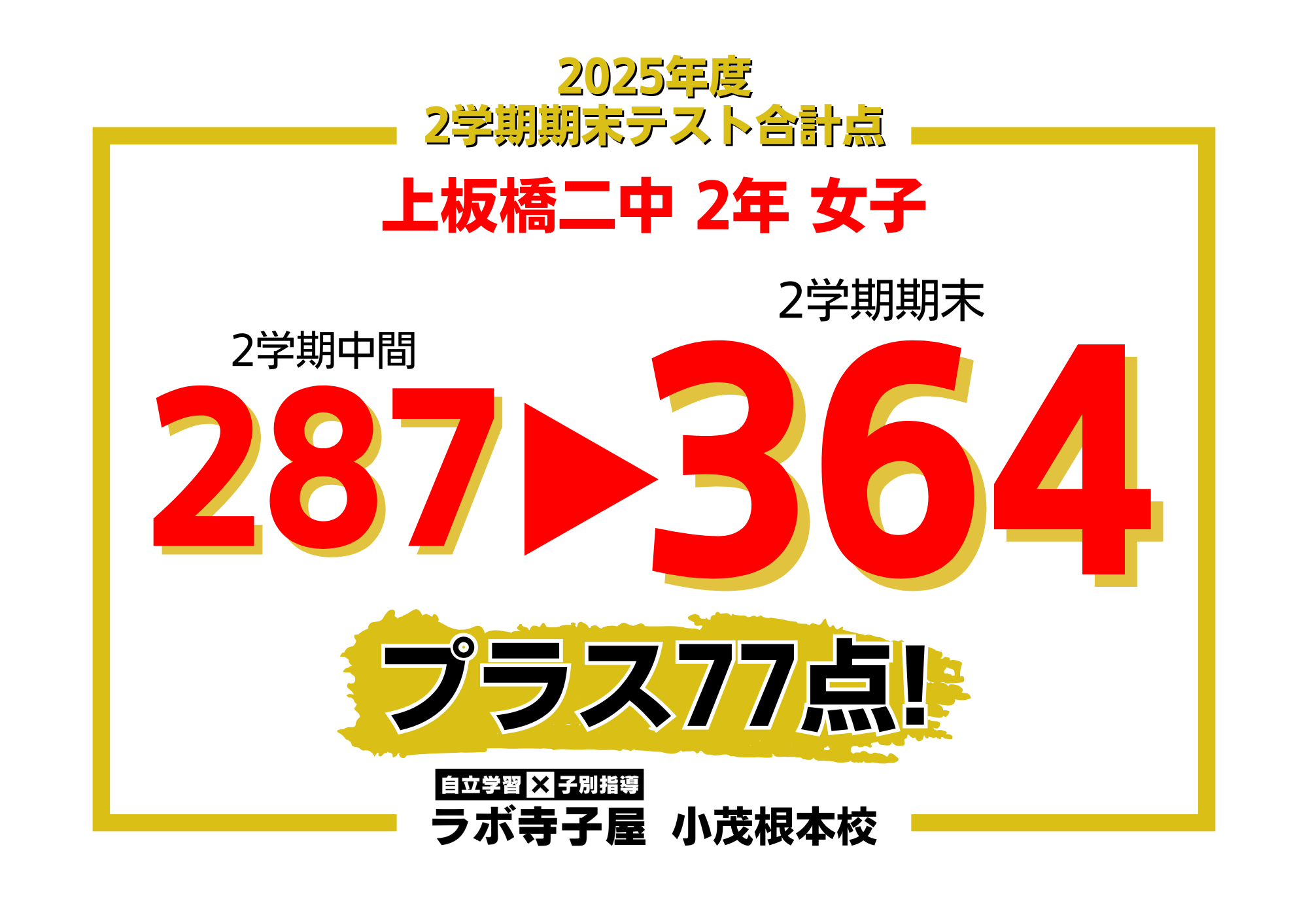 2学期末テスト5教科大幅得点アップ!上板橋二中2年生 |板橋・練馬・豊島区 GMARCH現役合格 総合学習塾ラボ寺子屋