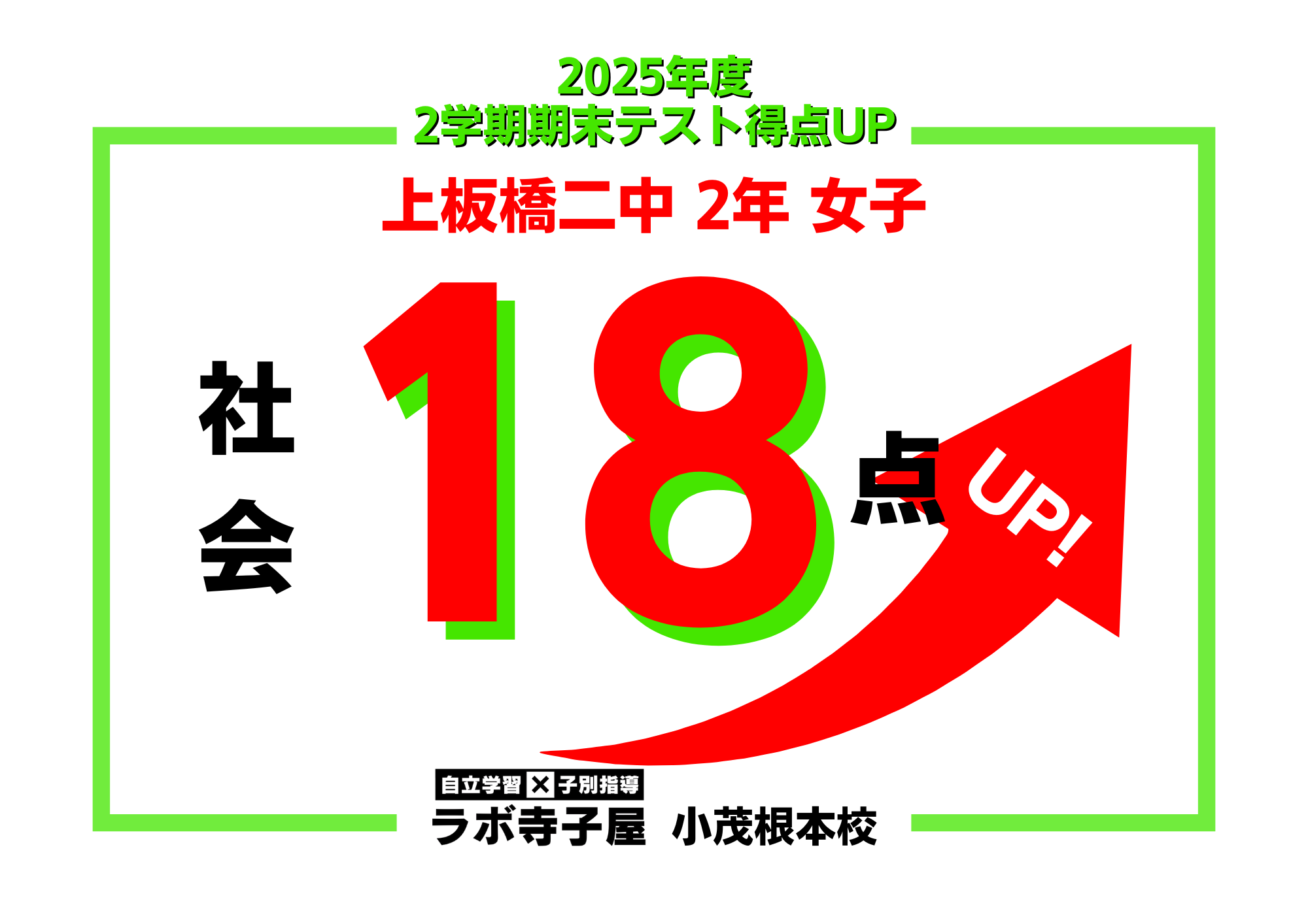 2学期末テスト大幅得点アップ!上板橋二中2年生