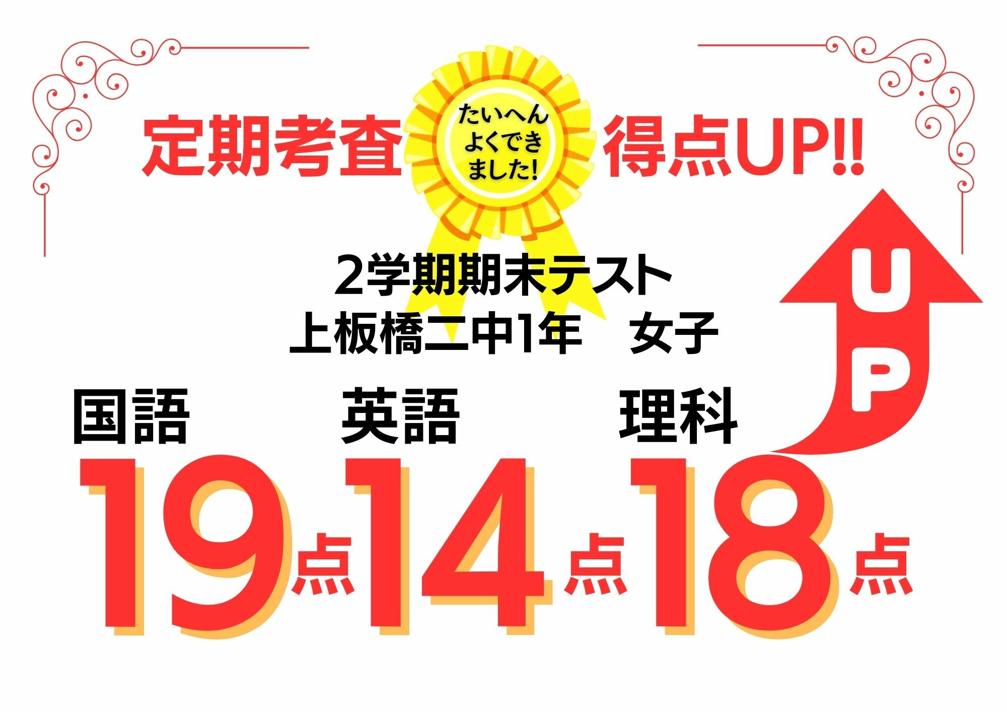 2023年2学期末テスト 上二中1年 3科目51点UP!