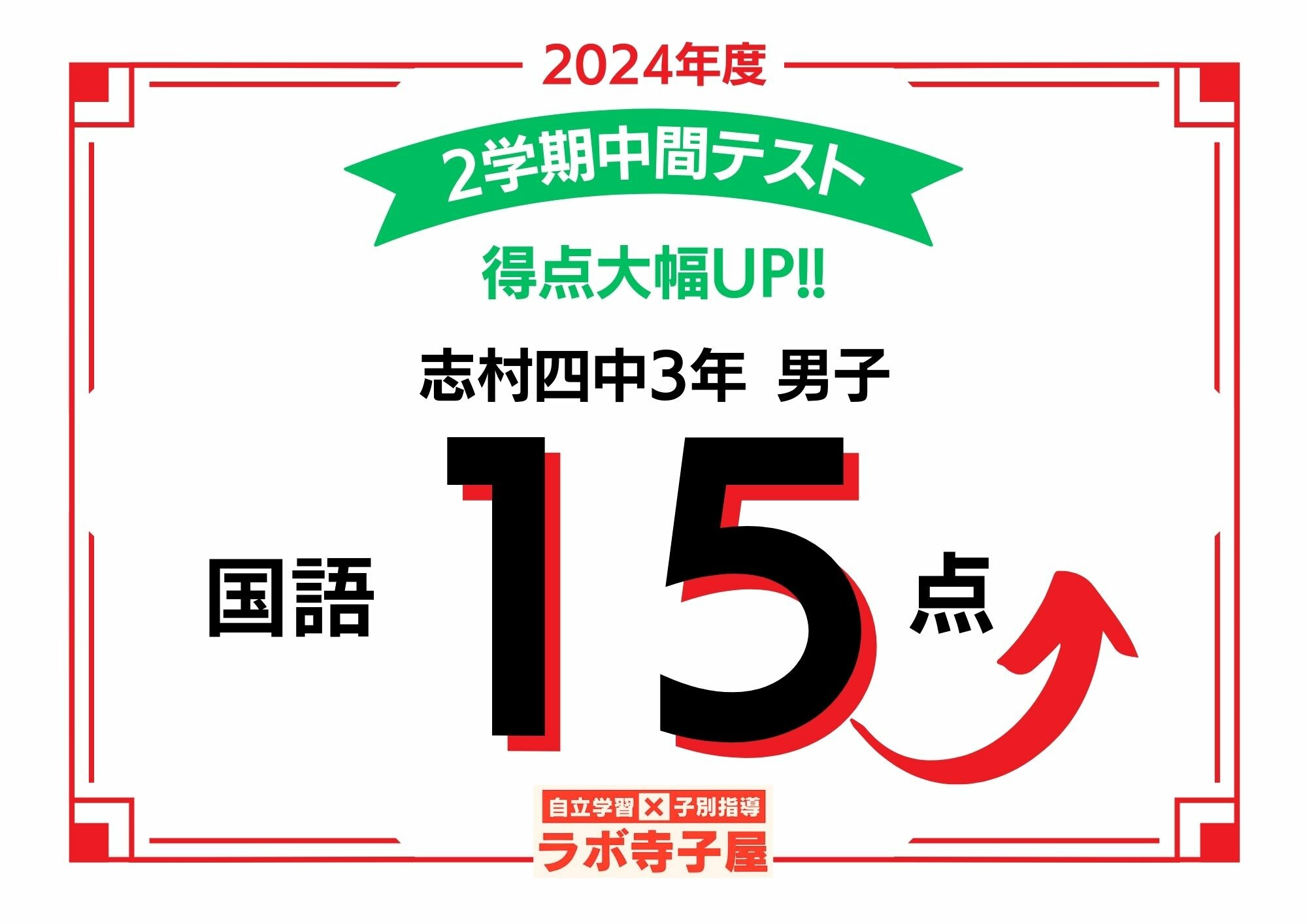 2学期中間テスト大幅得点アップ!志村四中3年 国語15点UP!|板橋・練馬・豊島区 GMARCH現役合格 総合学習塾ラボ寺子屋