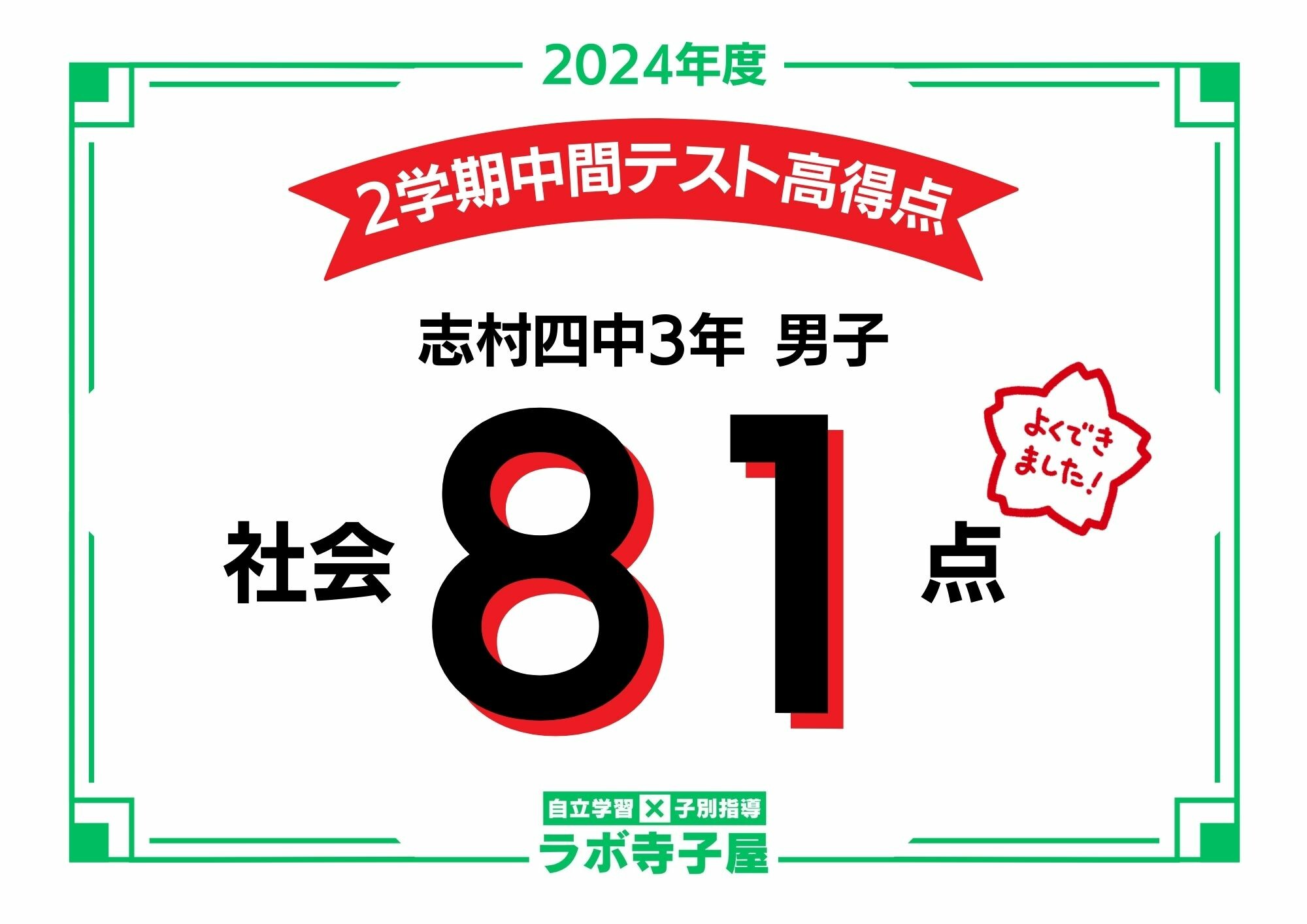2学期中間テスト高得点!志村四中3年 社会81点!|板橋・練馬・豊島区 GMARCH現役合格 総合学習塾ラボ寺子屋