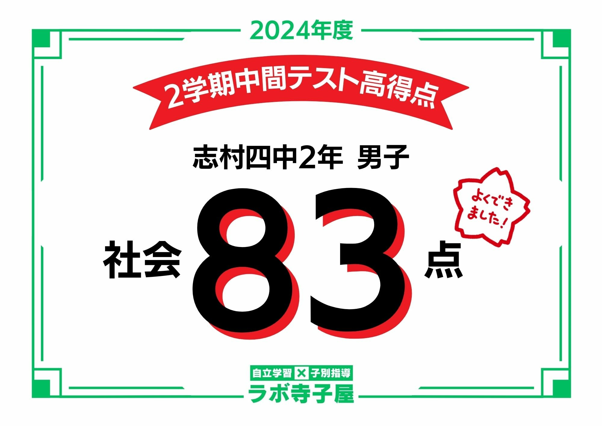 2学期中間テスト高得点!志村四中2年 社会83点!|板橋・練馬・豊島区 GMARCH現役合格 総合学習塾ラボ寺子屋