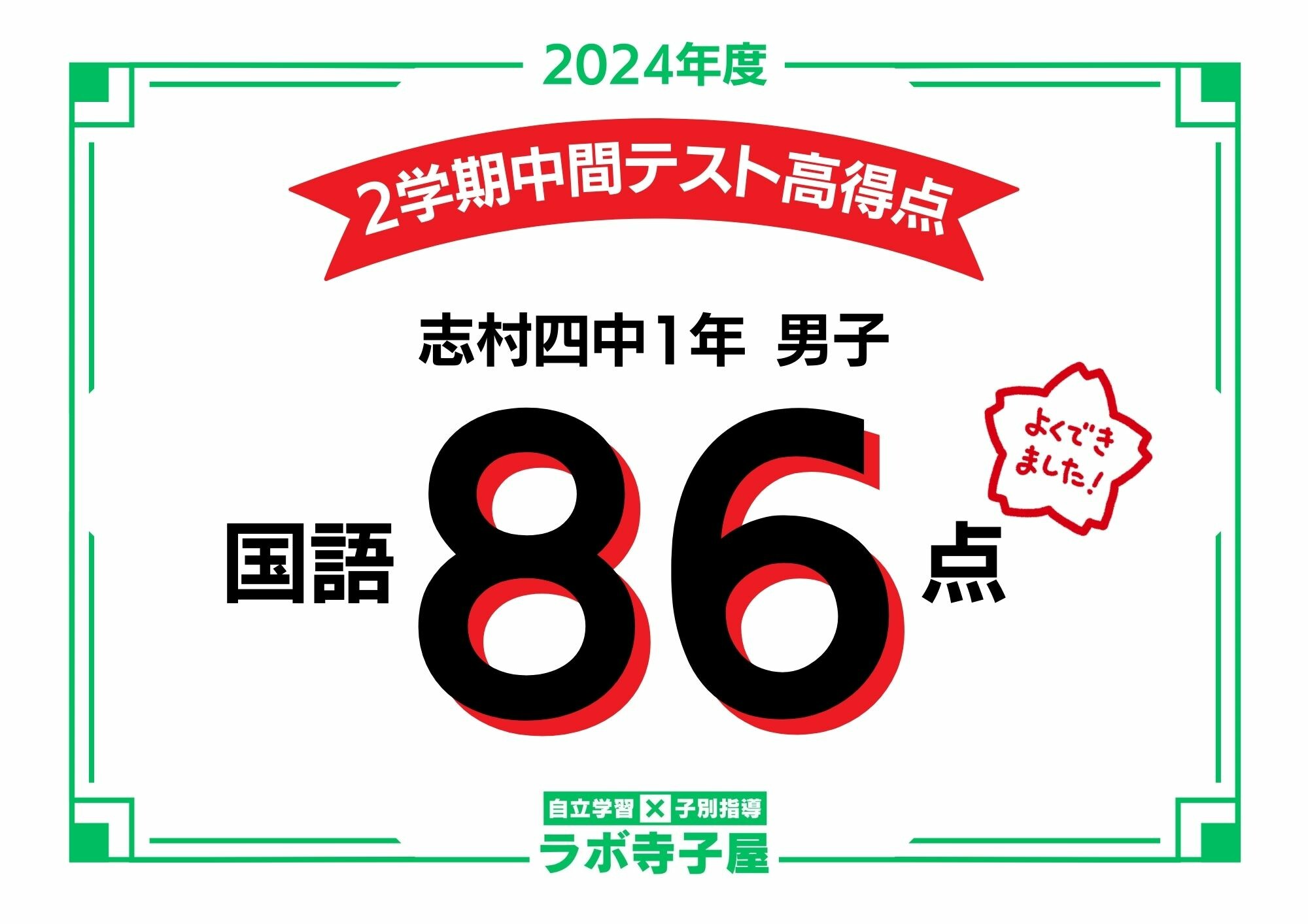 2学期中間テスト高得点!志村四中1年 国語86点!|板橋・練馬・豊島区 GMARCH現役合格 総合学習塾ラボ寺子屋