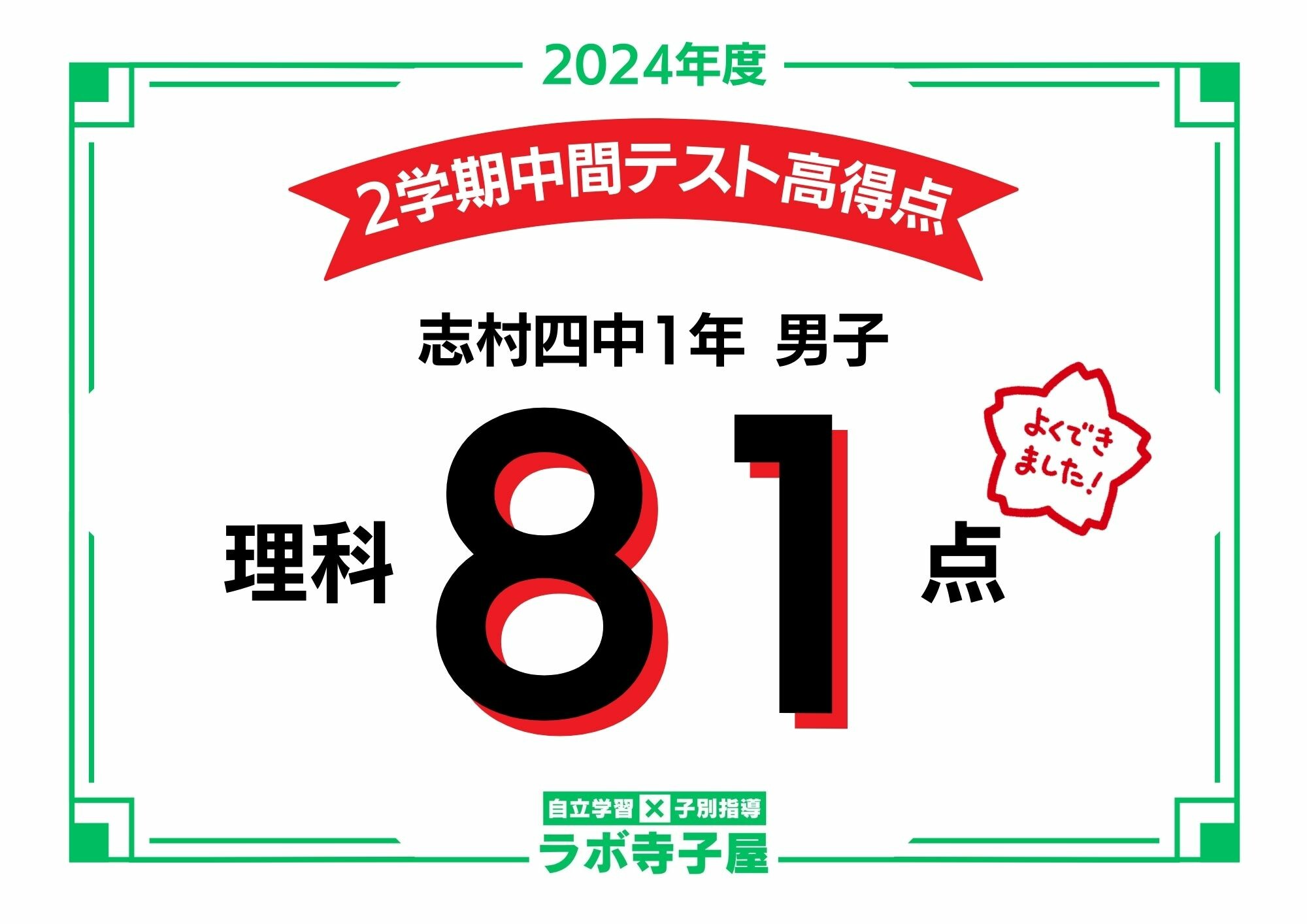 2学期中間テスト高得点!志村四中1年 理科81点!|板橋・練馬・豊島区 GMARCH現役合格 総合学習塾ラボ寺子屋