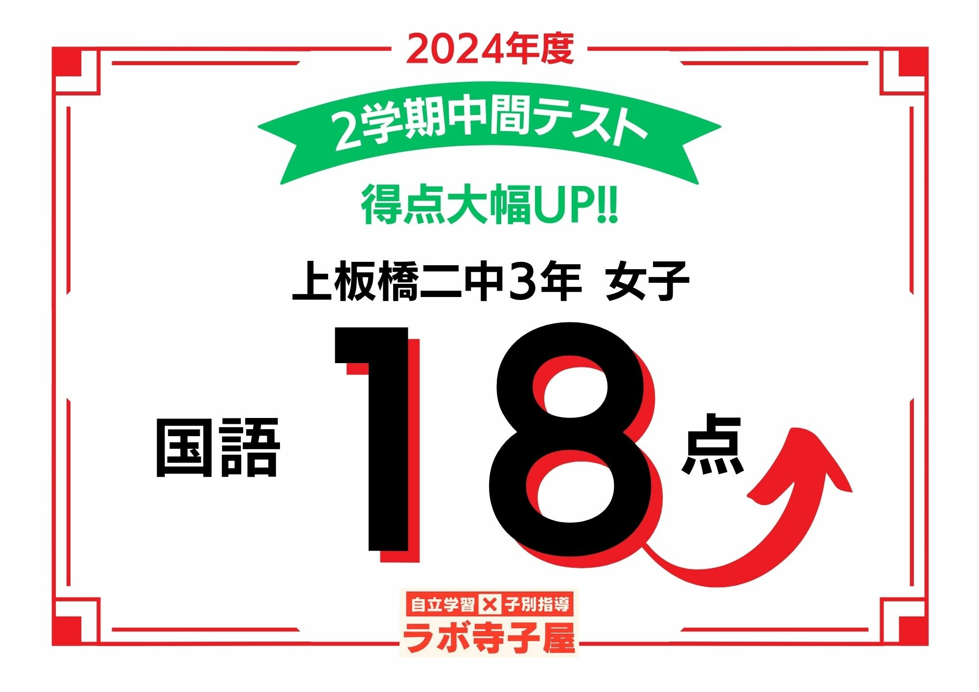 2学期中間テスト大幅得点アップ!上板橋二中3年 国語18点UP!|板橋・練馬・豊島区 GMARCH現役合格 総合学習塾ラボ寺子屋