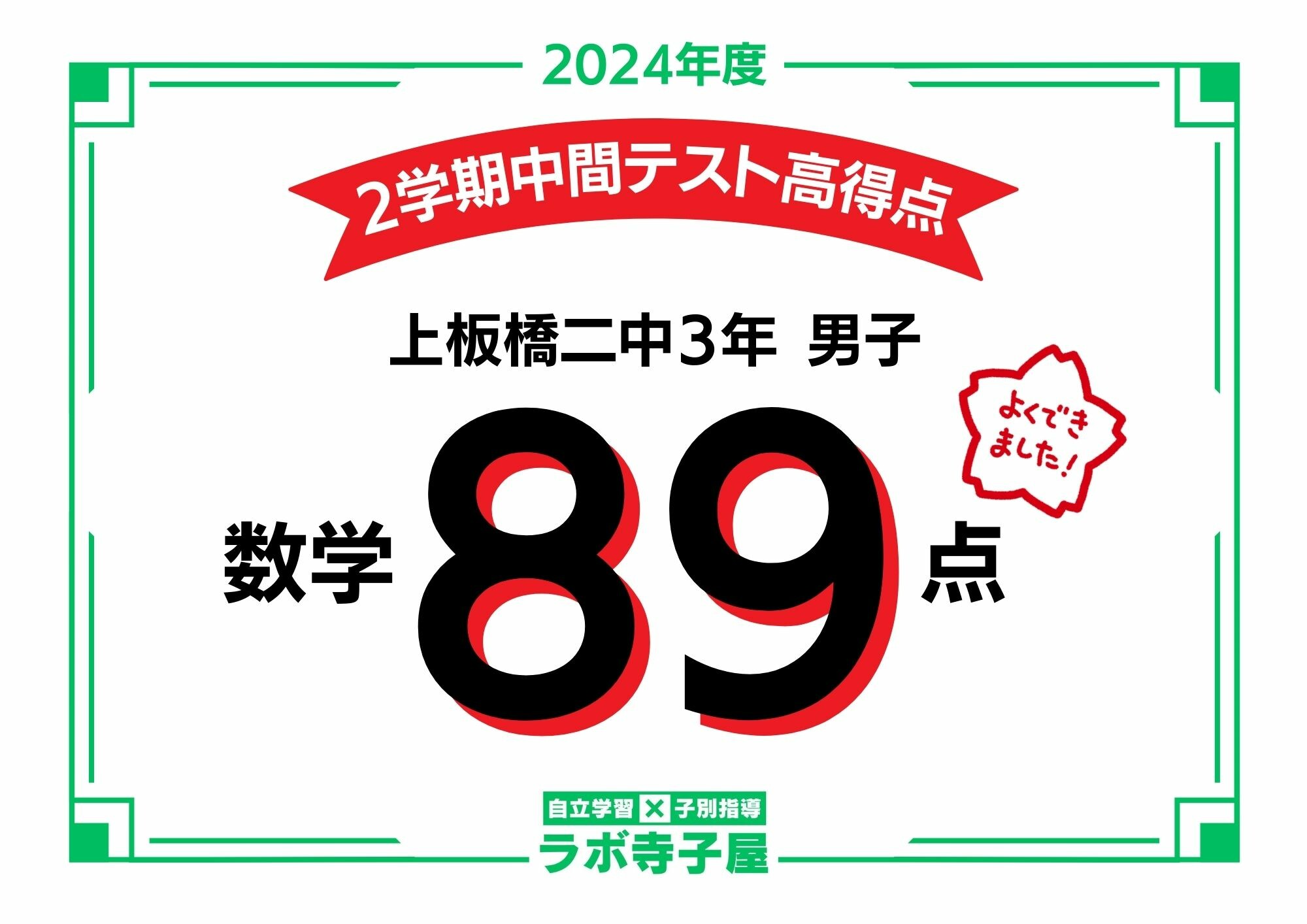 2学期中間テスト高得点!上板橋二中3年 数学89点!|板橋・練馬・豊島区 GMARCH現役合格 総合学習塾ラボ寺子屋