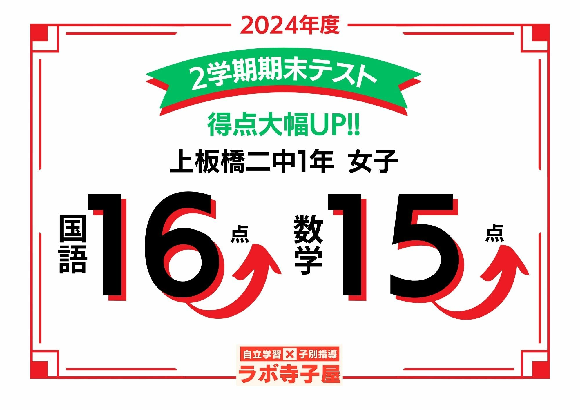 2024年2学期期末テスト大幅得点アップ!上二中2年生・2科目|板橋・練馬・豊島区 GMARCH現役合格 総合学習塾ラボ寺子屋