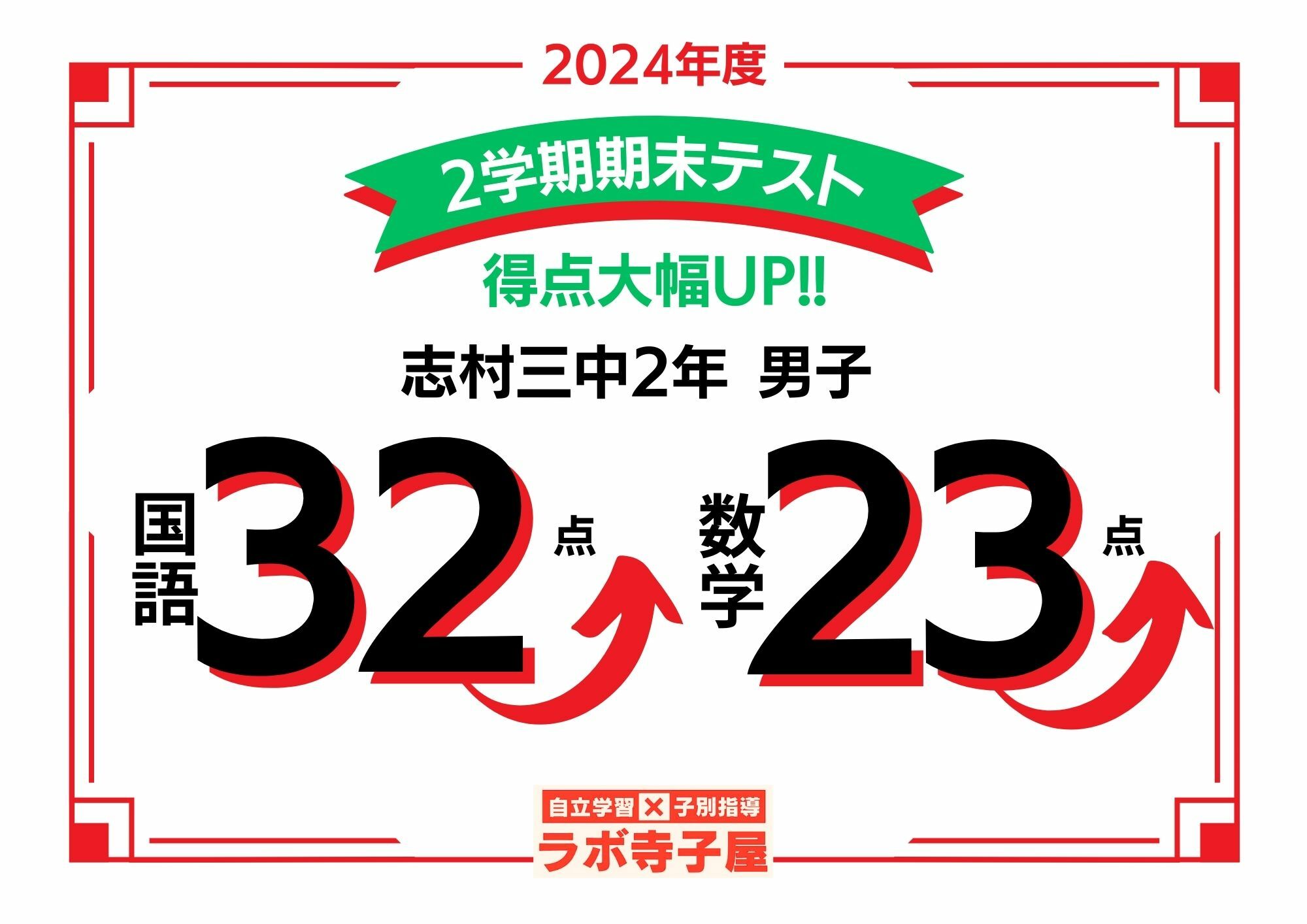 2024年2学期期末テスト大幅得点アップ!・2科目|板橋・練馬・豊島区 GMARCH現役合格 総合学習塾ラボ寺子屋