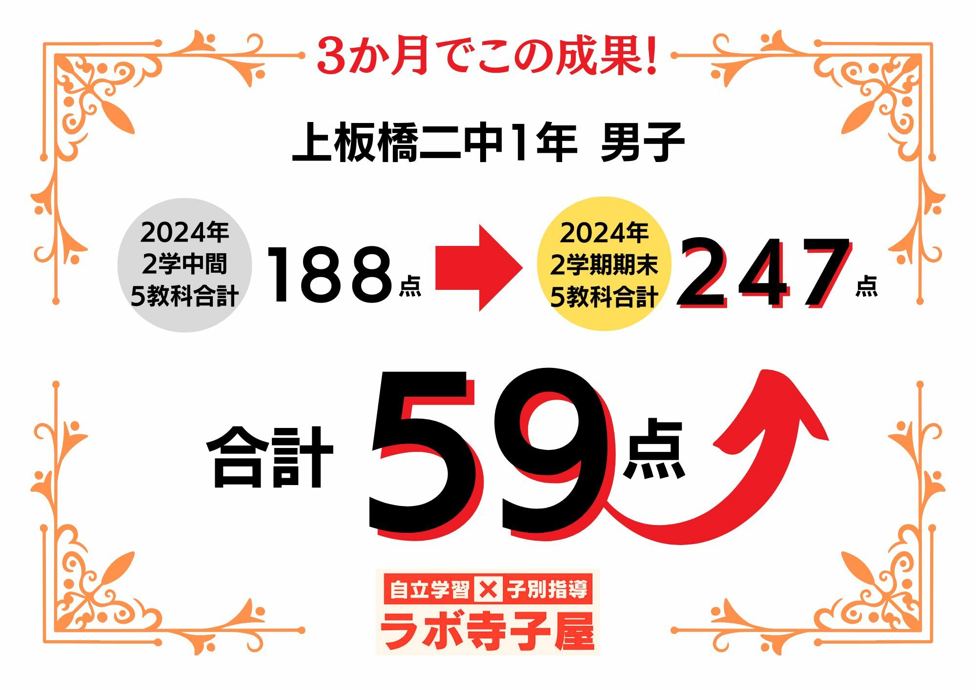 上板橋第二中・1年生・3か月の成果|板橋・練馬・豊島区 GMARCH現役合格 総合学習塾ラボ寺子屋