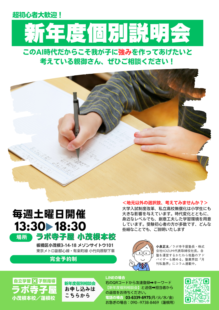 緊急の場合は、当塾教室番号までご連絡ください。(小泉へ電話転送がかかっております)