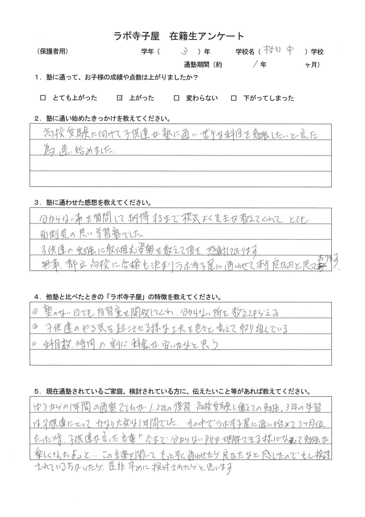 生徒・保護者の声 | 板橋・練馬・豊島区 GMARCH現役合格 総合学習塾ラボ寺子屋
